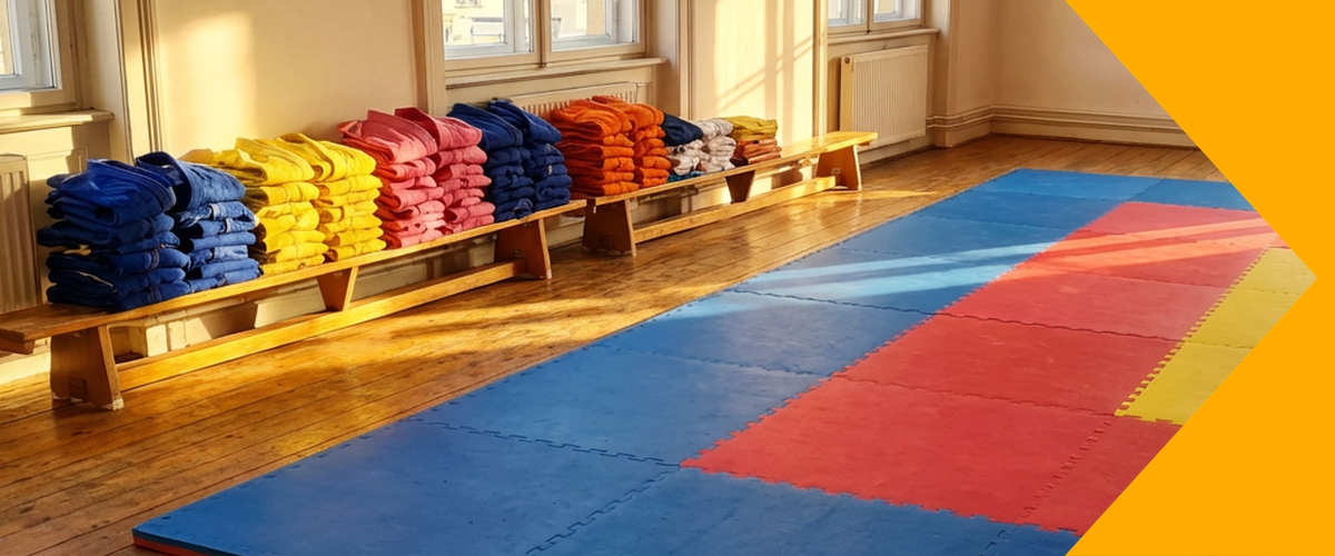 Do tego dochodzi system pasów – żółty, pomarańczowy, zielony, niebieski, brązowy, czarny. Każdy pas to namacalny dowód progresu. Dla dziecka, które ma trudność z dostrzeganiem własnych sukcesów, to potężne narzędzie.